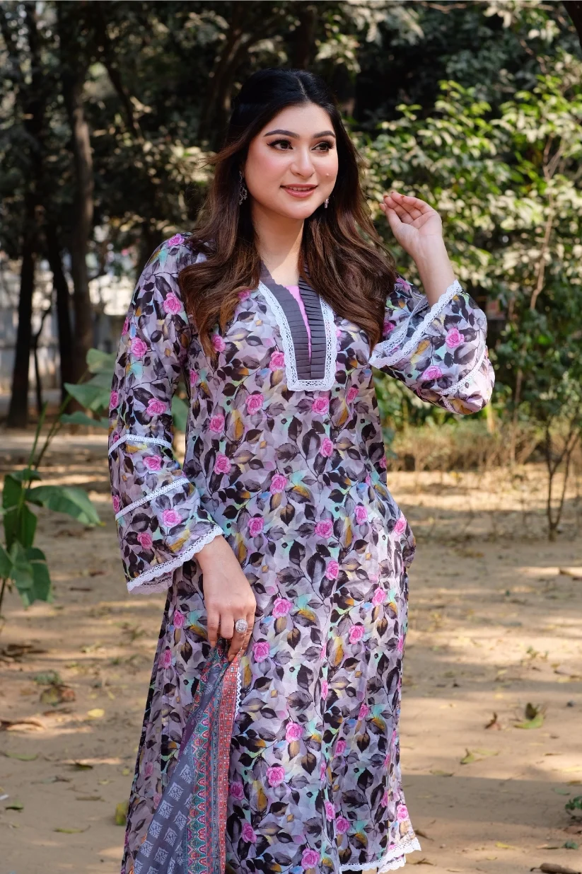 Stay effortlessly stylish with our Cotton Three-Piece Dress, made from 100% Pure soft cotton for all-day comfort. Designed with elegance and charm, this outfit is perfect for both casual and festive wear.